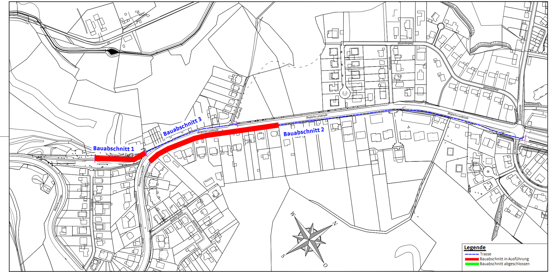 In Bauabschnitt 1 arbeiten wir bereits seit September 2025. Die Fertigstellung ist für Q1 2026 vorgesehen. Der Abschnitt befindet sich vollständig auf einem Waldweg, der für die Bauzeit gesperrt ist.