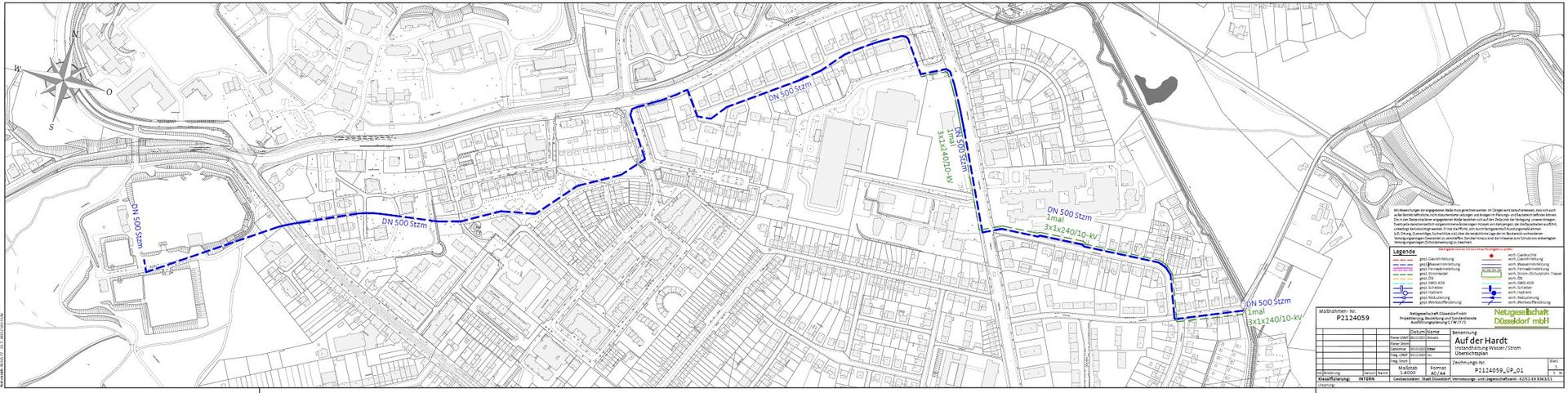 Damit in Grafenberg und Gerresheim die sichere Versorgung mit frischem Trinkwasser langfristig gewährleistet wird, erneuern wir in den kommenden Jahren abschnittsweise unser Leitungsnetz. Die bestehende Leitung in diesem Bereich ist in die Jahre gekommen und wird nun durch eine moderne, leistungsfähige Leitung ersetzt.